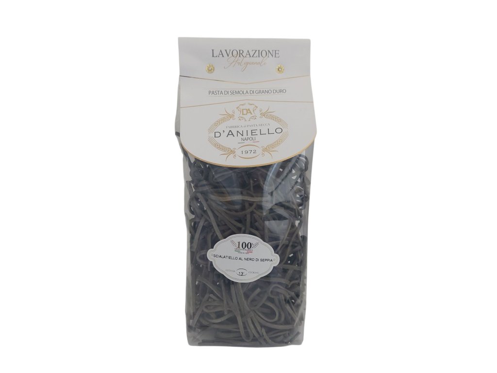 Sušené italské těstoviny nejvyšší kvality dle splňující normy Pasta di Gragnano s příchutí sépie. Těsto je po uhnětení vytlačováno přes unikátní výrobní proces bronzových matric, které společně s pomalým sušením při nízké teplotě zajišťují hrubý povrch těstovin pro lepší přilnavost omáček.